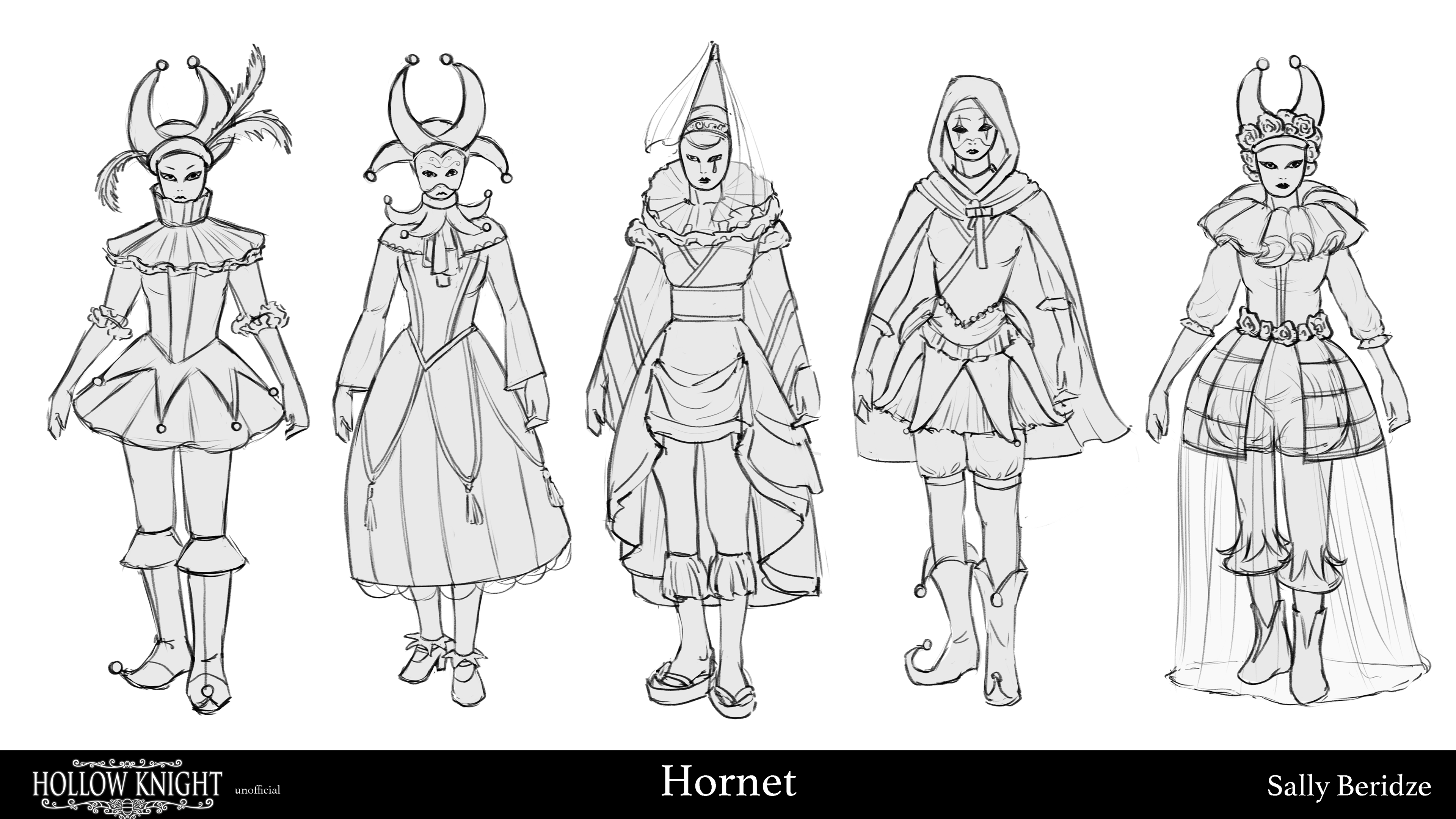 Hollow Knight characters Hornet and Knight are redesigned with a Venetian carnival costume, mixed with Japanese influence. A work in progress.