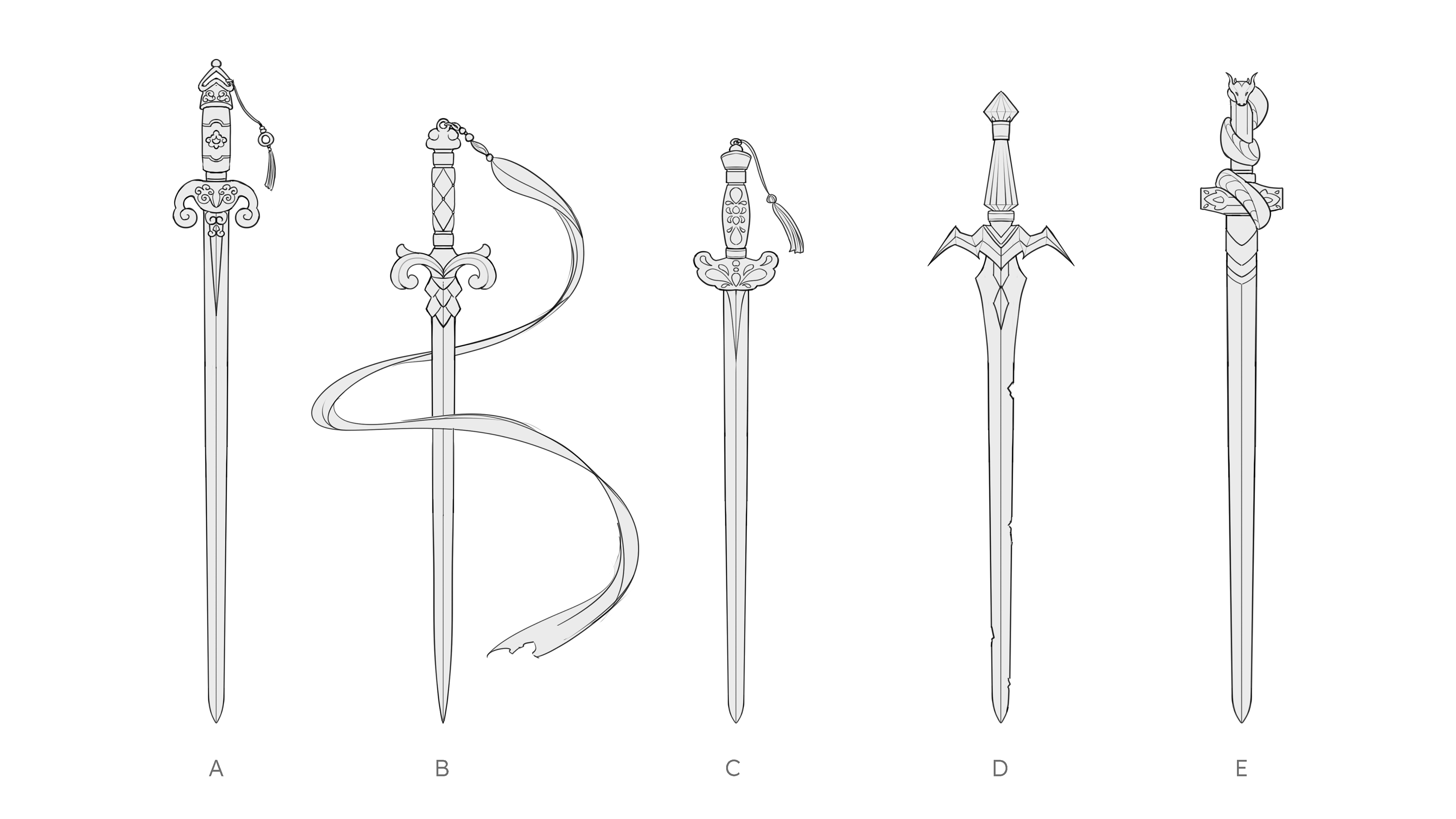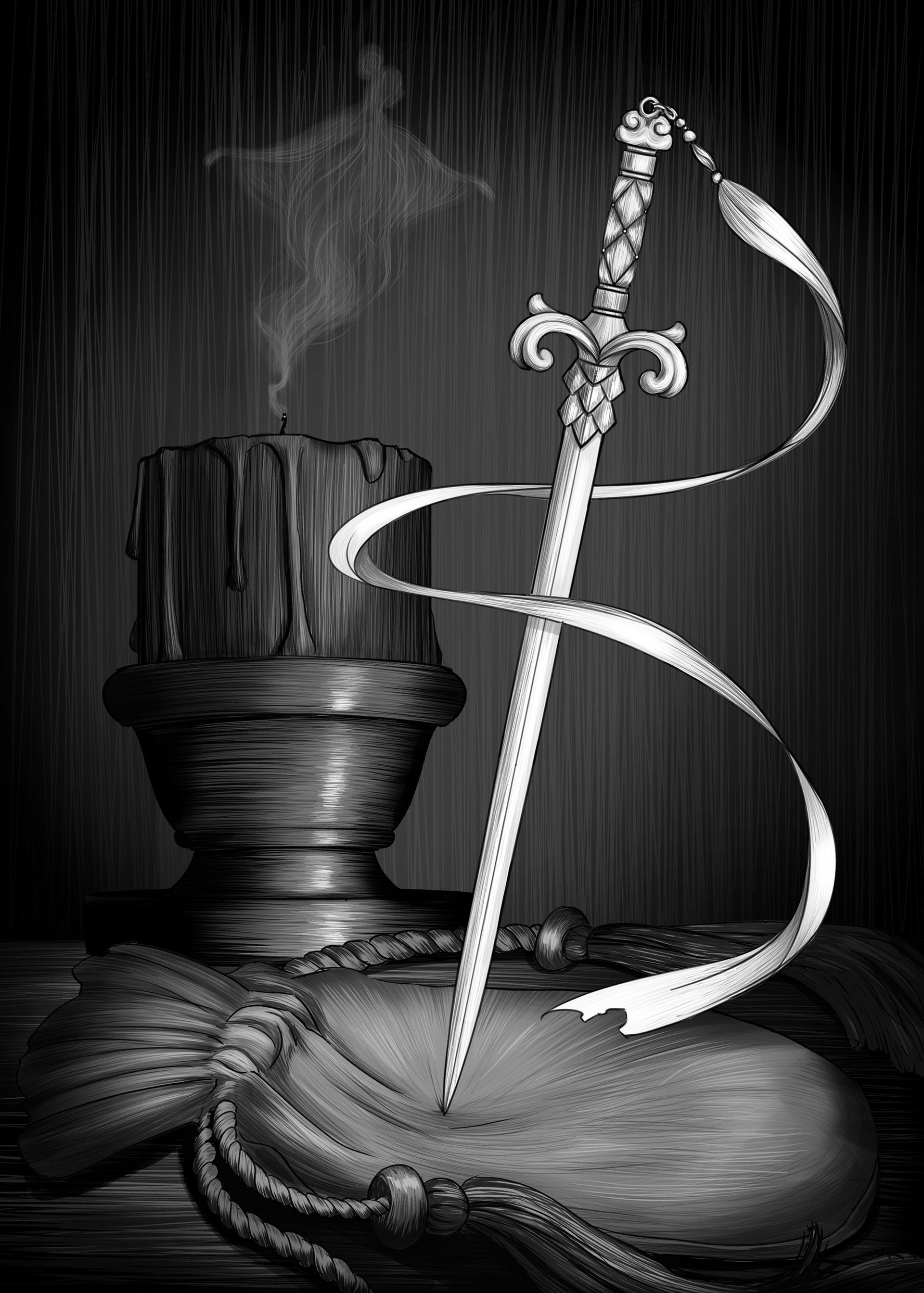 The Magic Sword - A prop card illustration based on The Magic Sword by Pu Songling. The Sword embodies mystical protection and power against malevolent forces to help the protagonists overcome spirits and threats in the story.