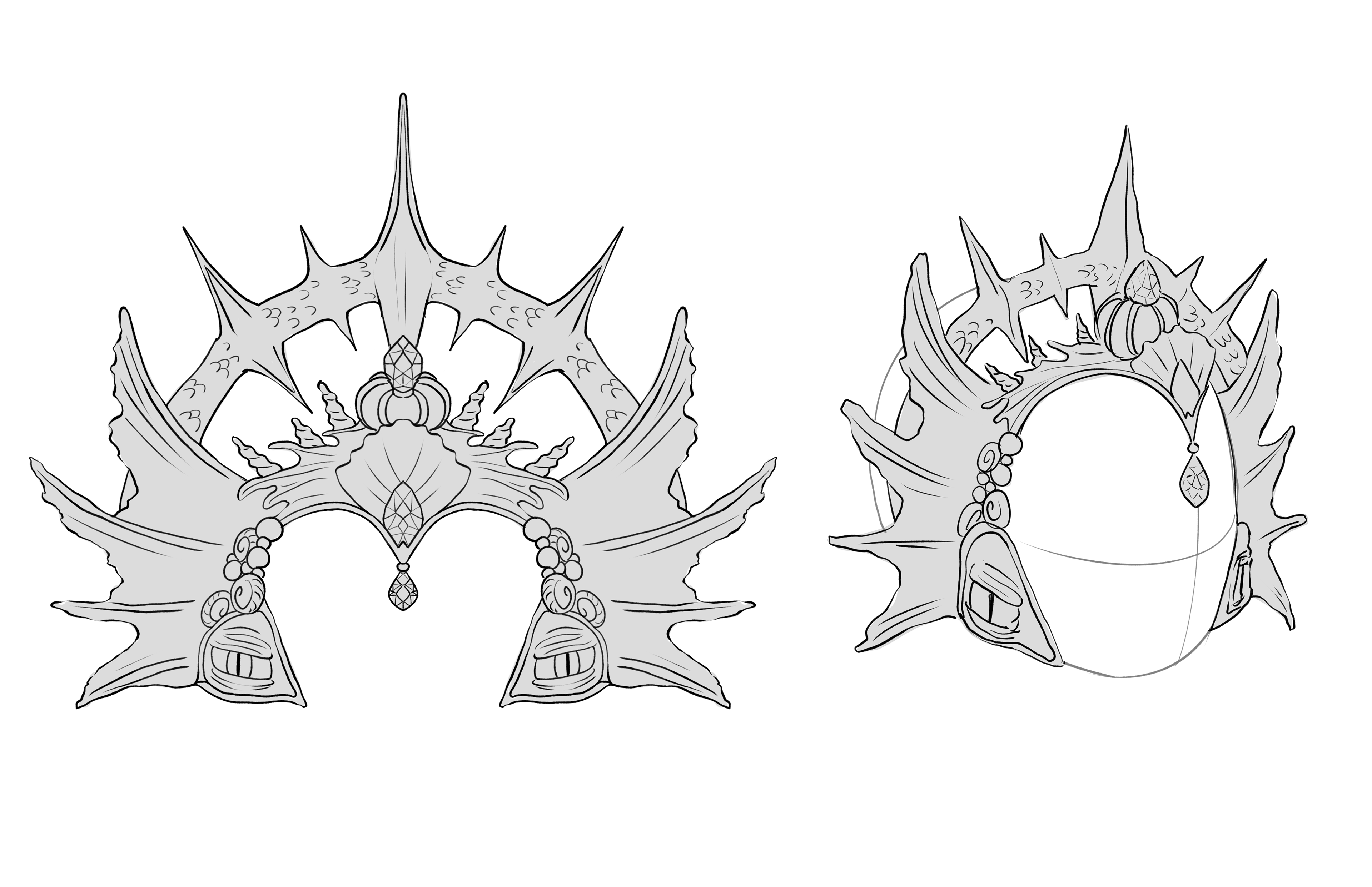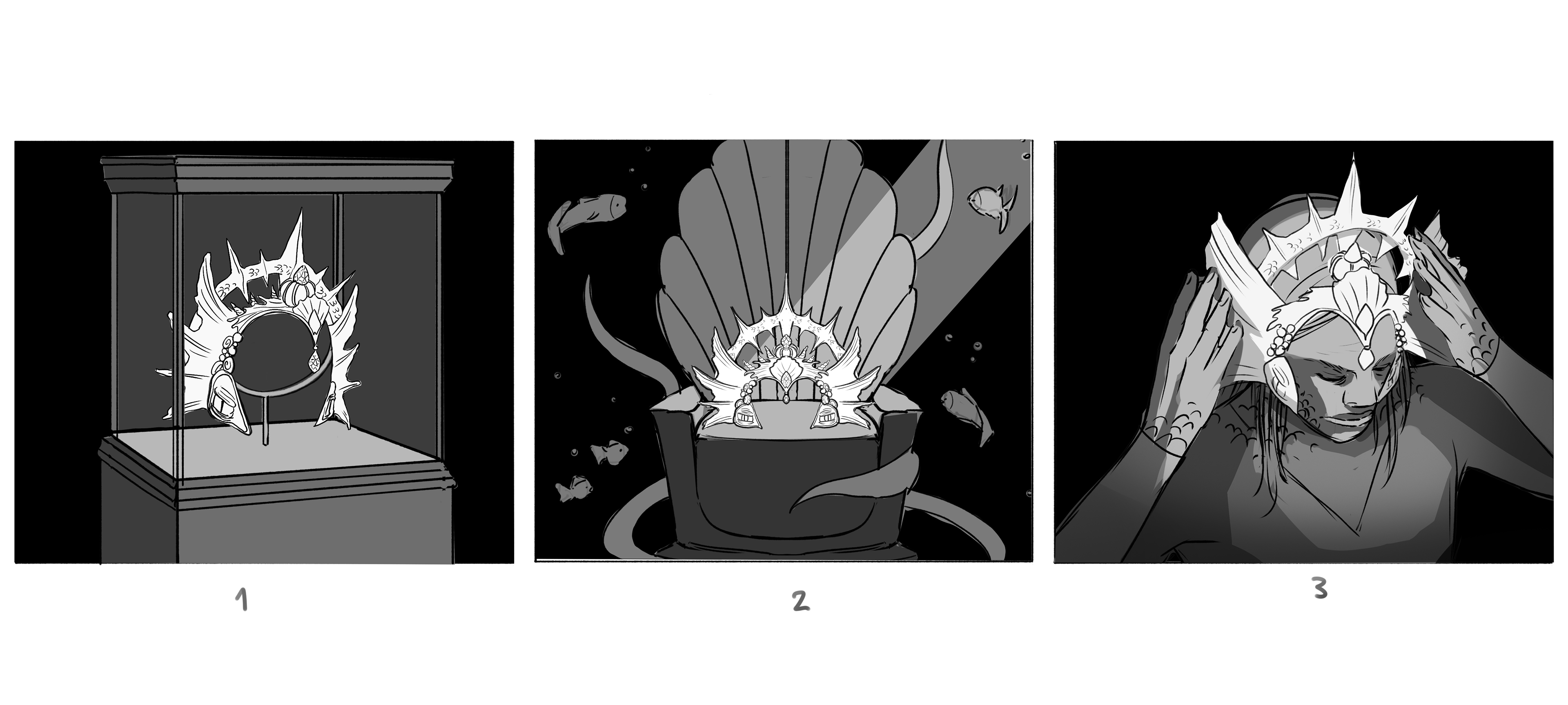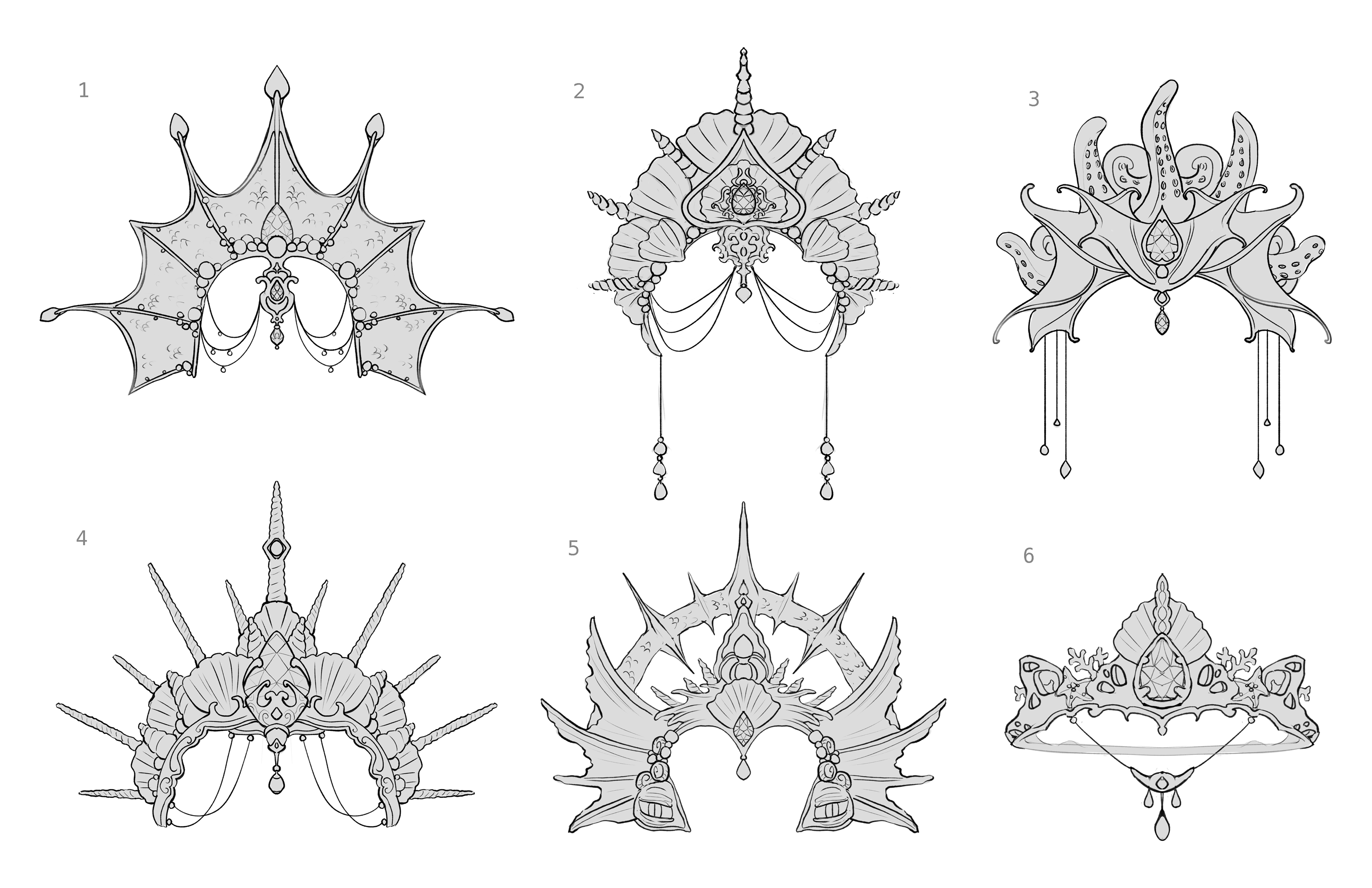(WIP) Tiara of Dagon - A prop card illustration inspired by The Shadow over Innsmouth by H. P. Lovecraft. The tiara blends regal design with marine and cultic motifs, emphasizing its otherworldly origin.