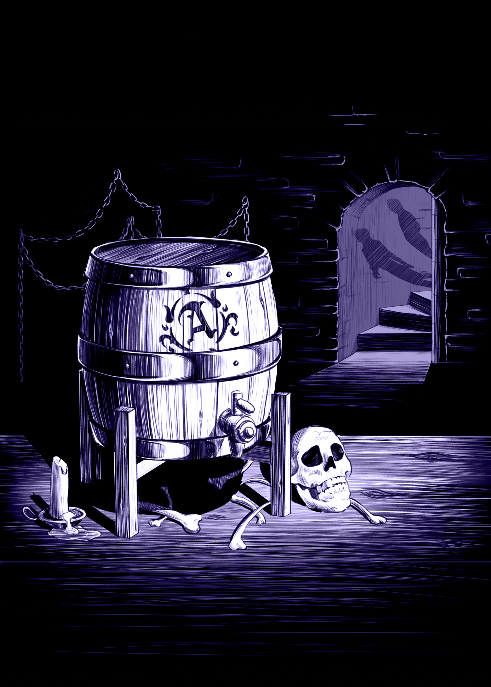 Cask of Amontillado - A prop card illustration inspired by The Cask of Amontillado. The cask is designed to reflect the deceptive elegance of the wine barrel that conceals a grim fate.