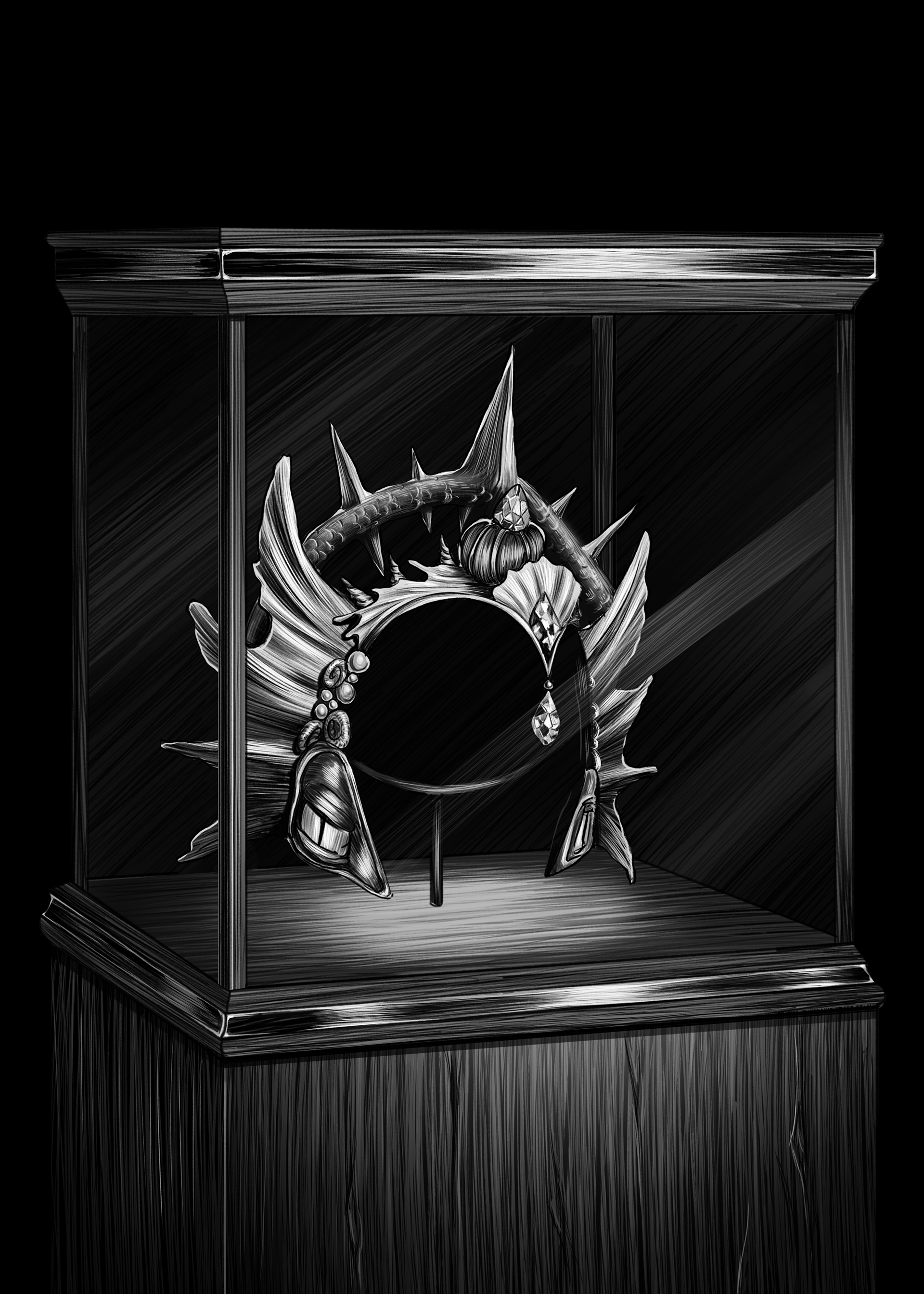 Tiara of Dagon - A prop card illustration inspired by The Shadow over Innsmouth by H. P. Lovecraft. The tiara blends regal design with marine and cultic motifs, emphasizing its otherworldly origin.