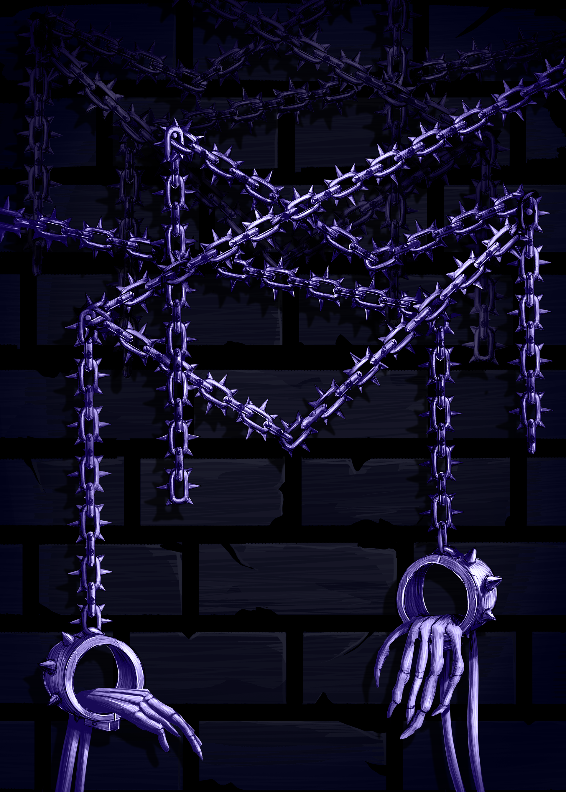 Fortunato's Chains - A prop card illustration based on The Cask of Amontillado by Edgar Allan Poe. The chains symbolize deception and entrapment, sealing Fortunato’s fate through calculated revenge in the story.