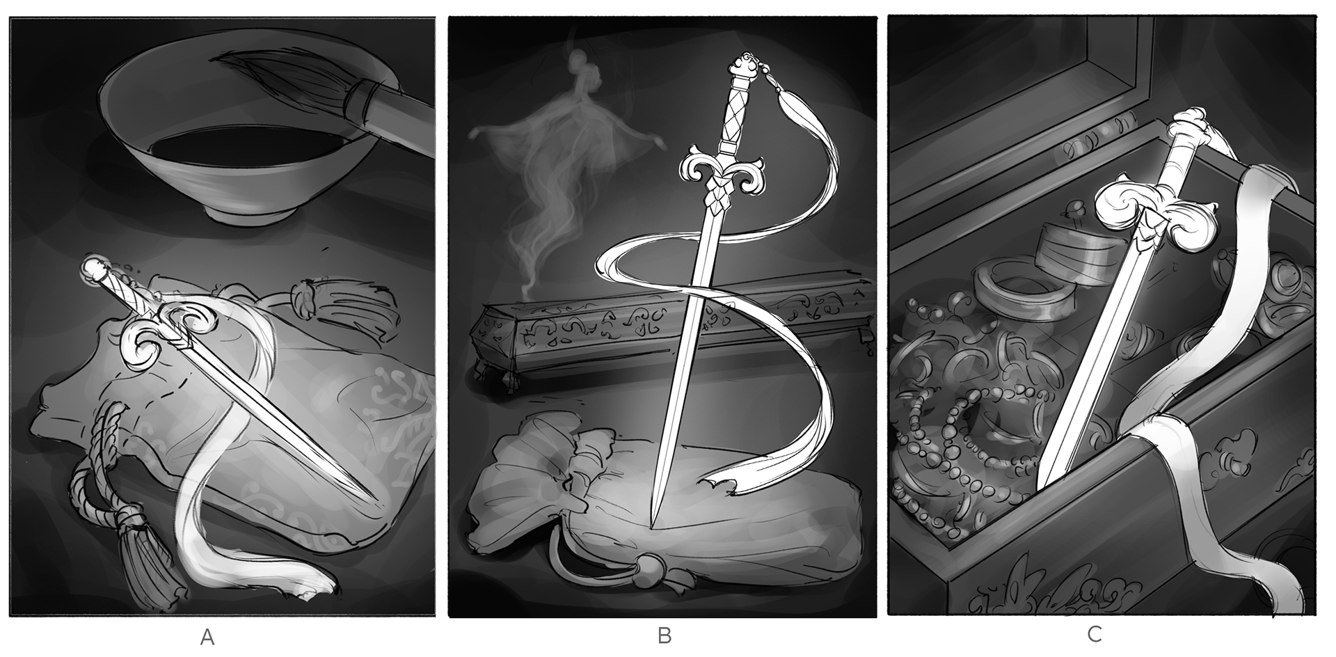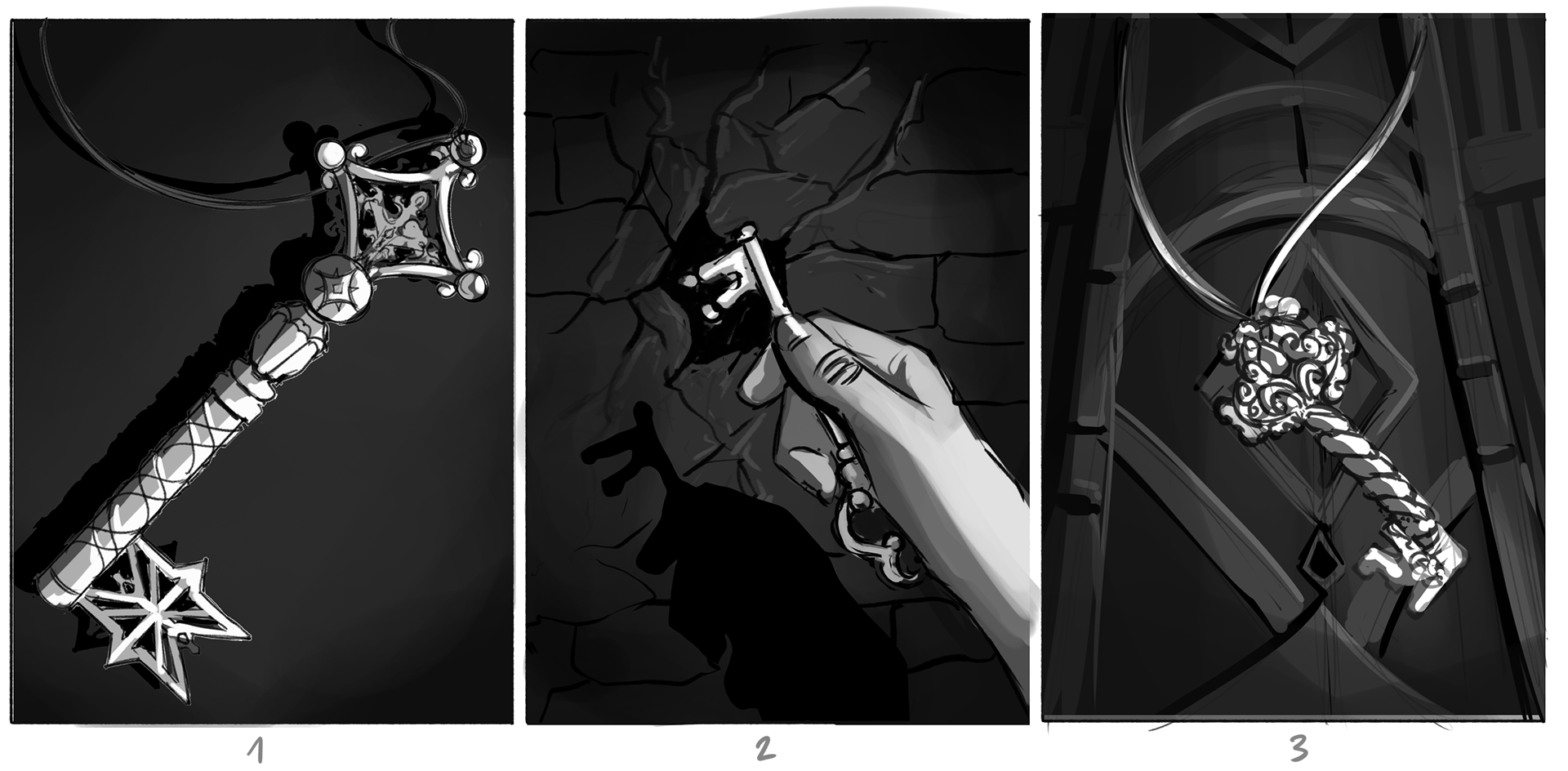 As a 2D card artist on Masterworks of Horror, I concept props and illustrate polished item card art.