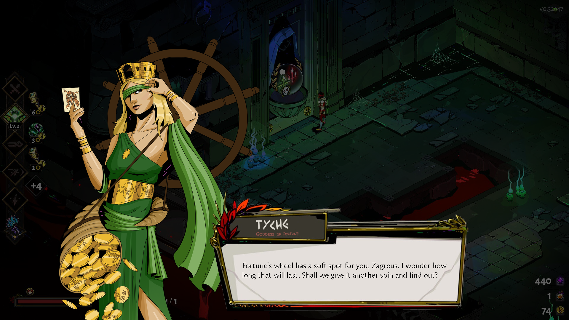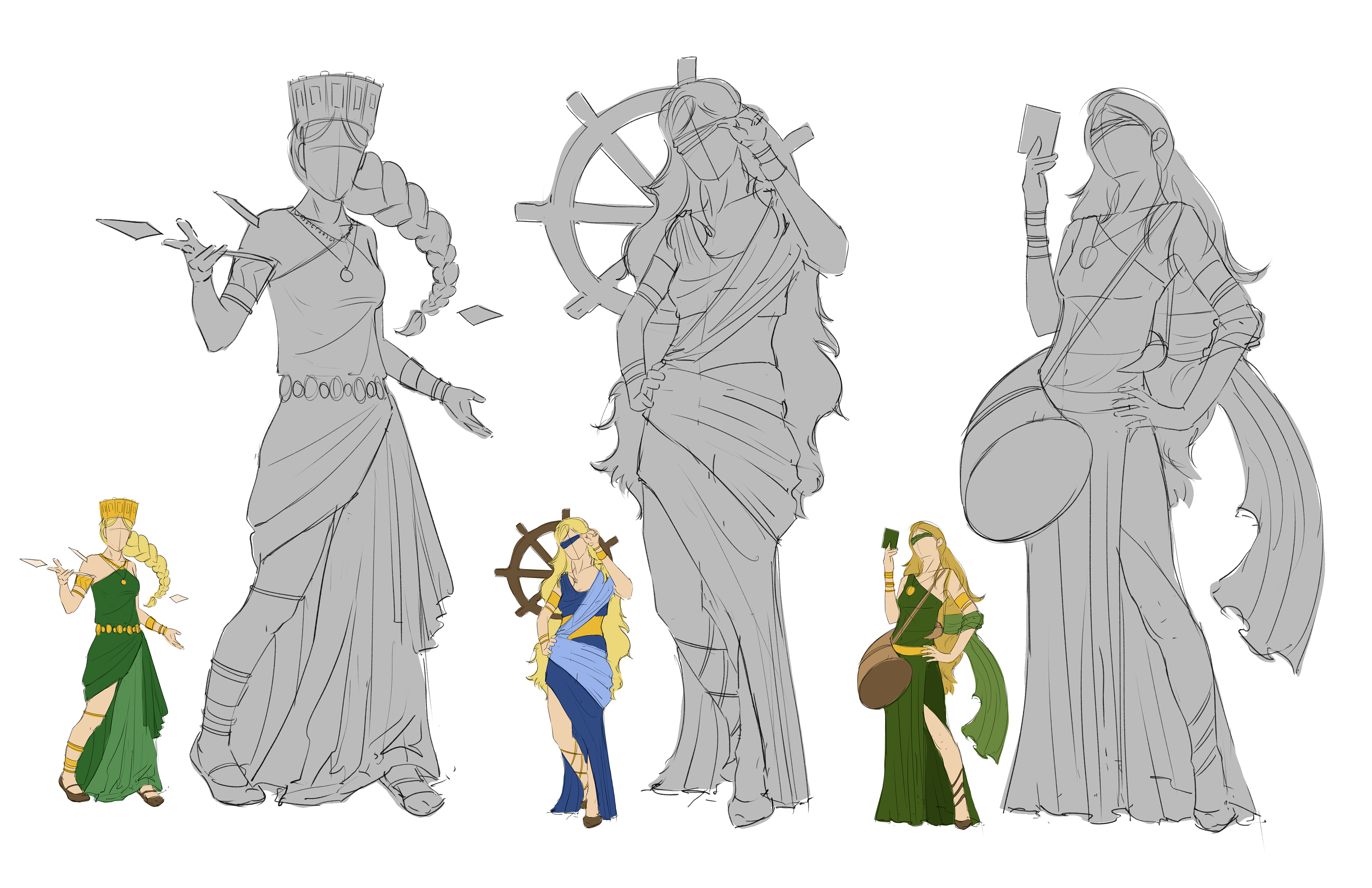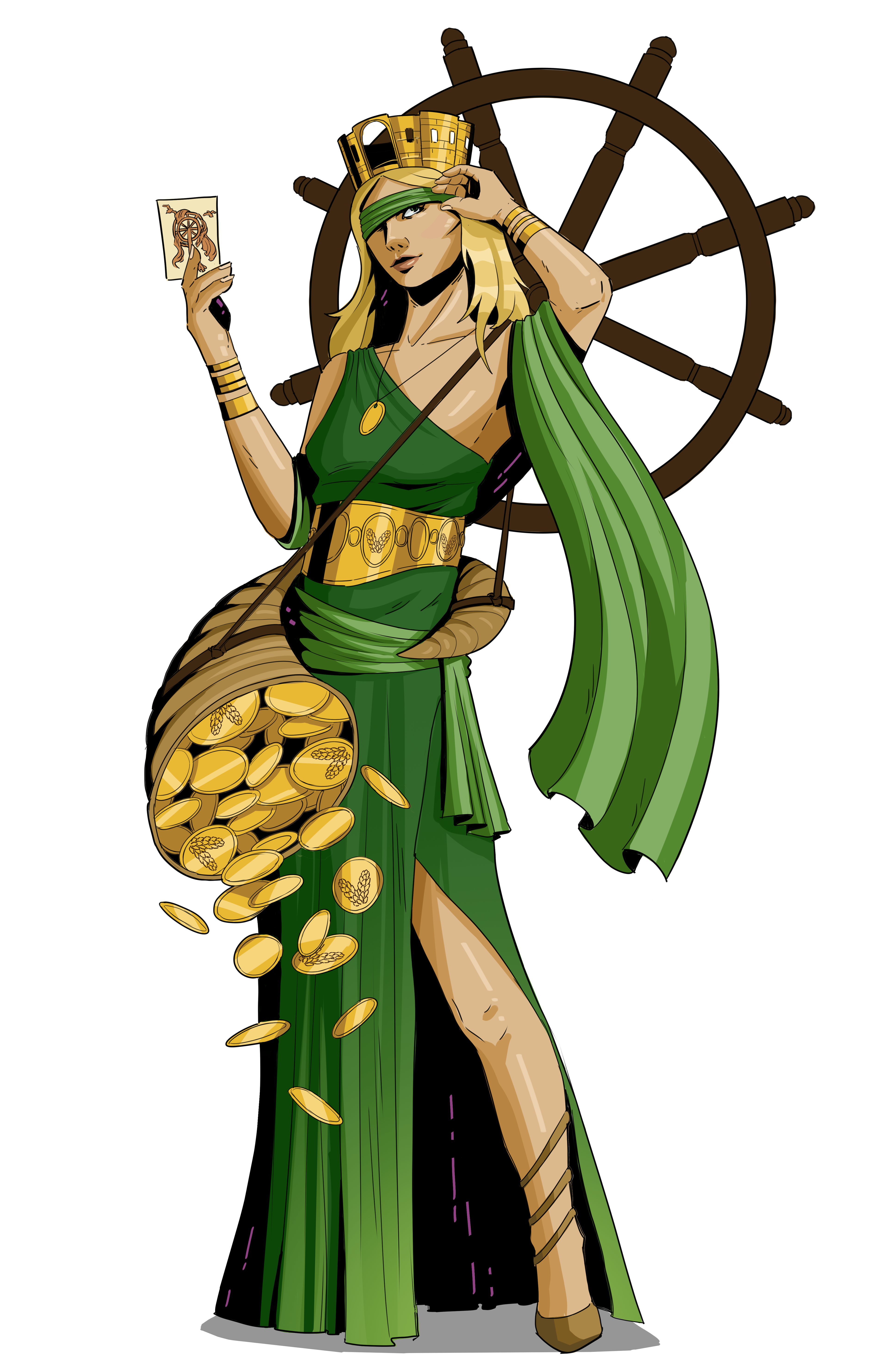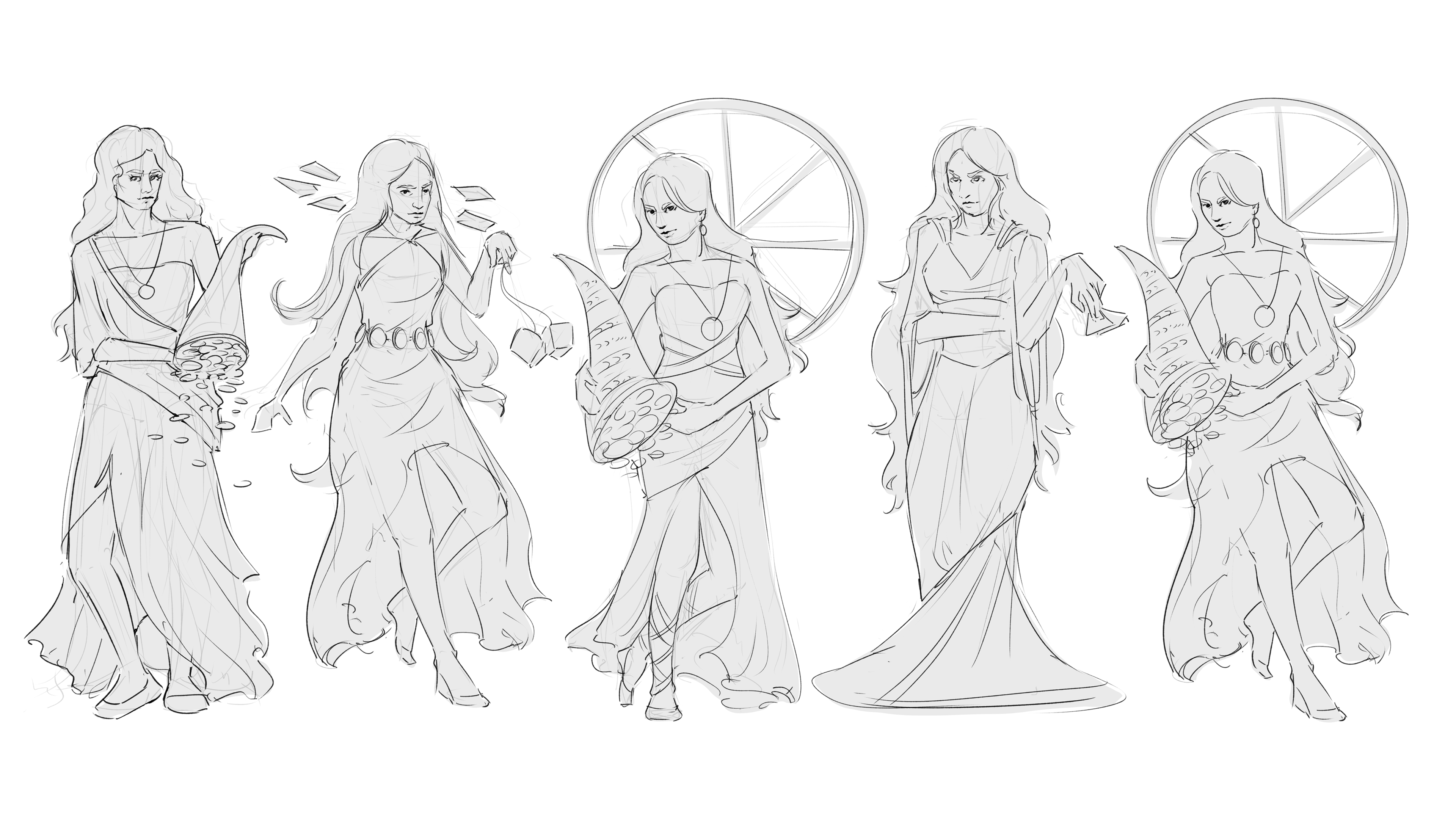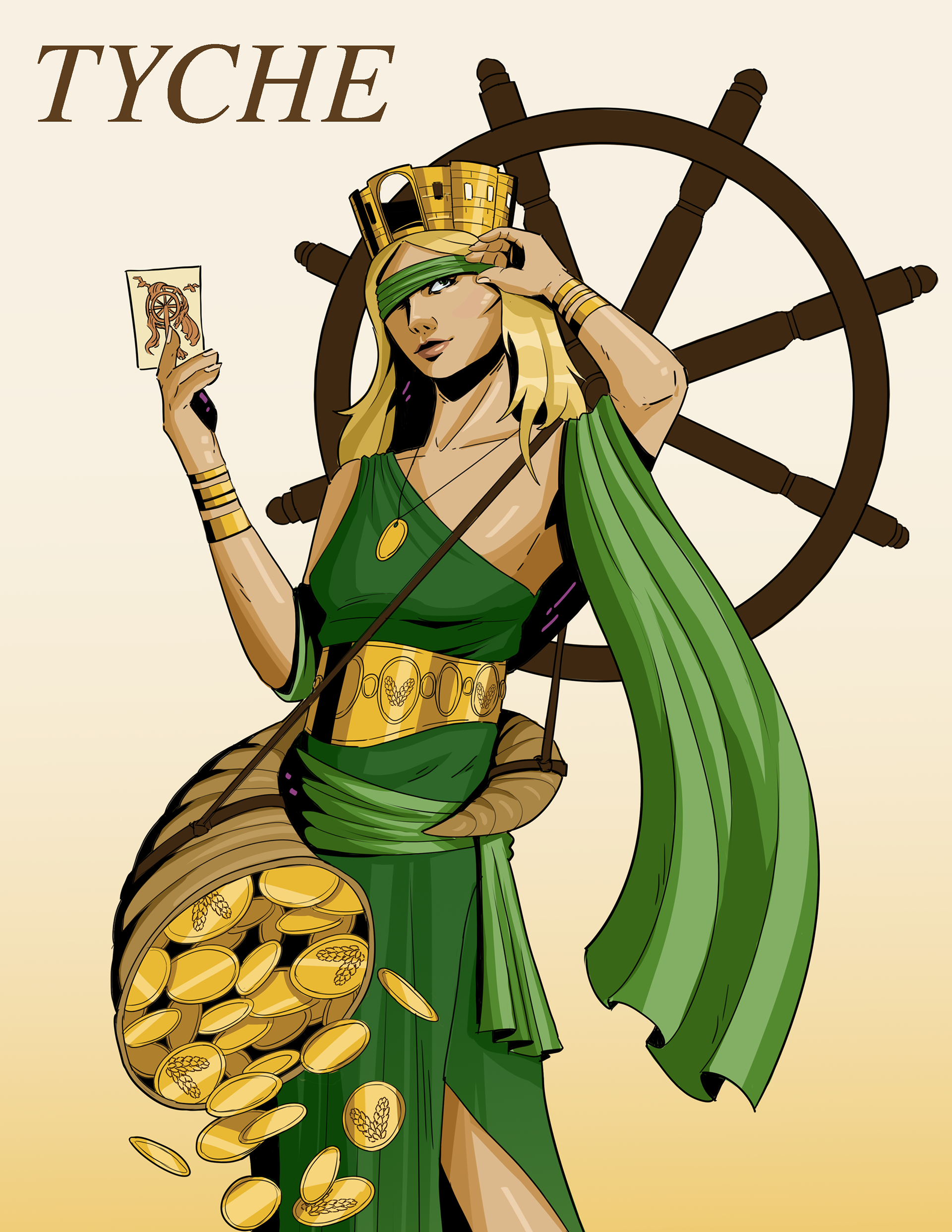 A character concept inspired by Tyche, the Greek goddess of fortune, reimagined in the visual and narrative style of Hades. This project explores how mythological figures can be adapted into stylized game worlds through design, symbolism, and personality.